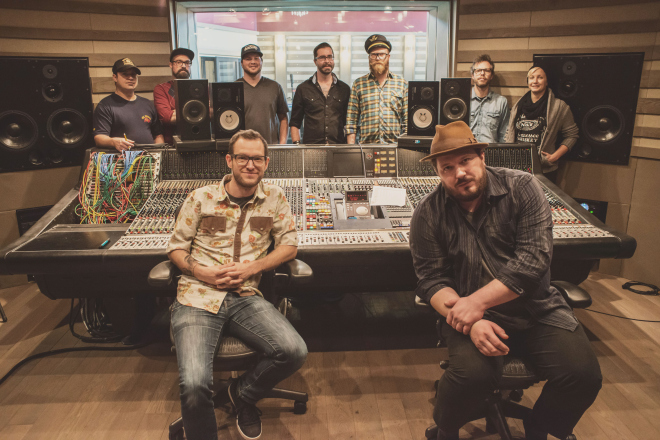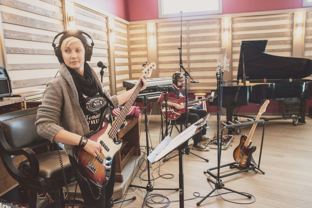 Recording with Josh Rob Gwilliam and Derek Downham at the decadent OCL Studios. (Photos by Trevor Hatter)